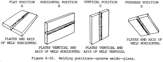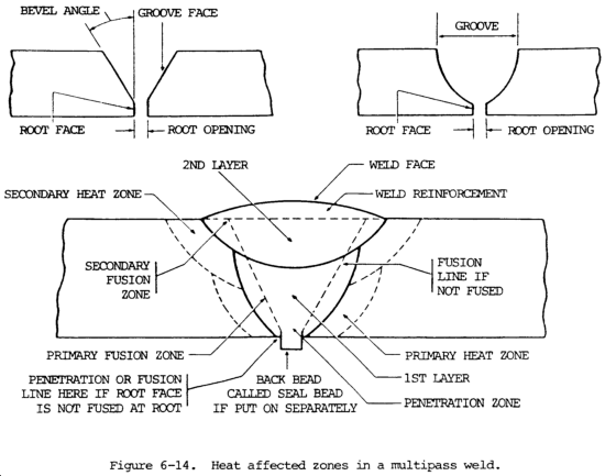 a. The nomenclature of the weld, the zones affected by the welding heat when a butt weld is made by more than one pass or layer, and the nomenclature applying to the grooves used in butt welding are shown in figure 6-14. Figure 6-15 is based on weld type and position.