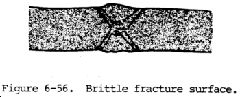 (7) The third factor is fracture surface and texture. Brittle or cleavage fractures have either a granular or a crystalline appearance. Brittle fractures usually have a point of origin. The chevron pattern will help locate this point.