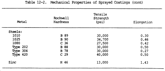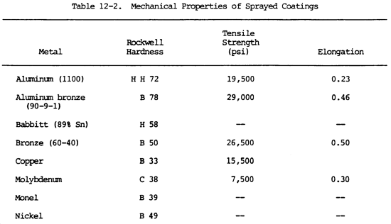 (1) The chemical properties of sprayed coatings are those of the coating metal. The physical properties often are quite different (table 12-2).